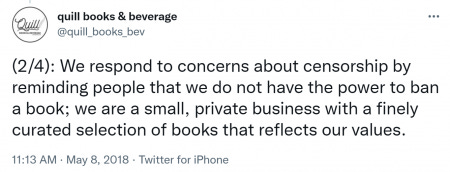 When we do this, we give the book ban power. We create new avenues by which is appears reasonable, respectable, and an okay thing for average people to do.